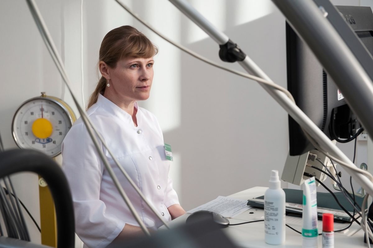 Углубленные исследования (cтресс ЭКГ–тест с ФН) позволяют диагностировать снижение коронарного и миокардиального резерва, оценивать адаптационные возможности сердечно-сосудистой системы, определять адекватный уровень физической нагрузки для пациентов. В работе используется оборудование ведущих производителей («Mortara», «Oxford», «Astrocard», «Erich Jaeger»), которые в реальном режиме времени контролируют электрофизиологические параметры сердца, оценивают общую адаптационную реакцию организма. Наличие различных типов нагрузочных устройств (тредмил с положительным и отрицательным углом наклона, велоэргометр вертикальный и горизонтальный) дает возможность индивидуально выбирать конкретную модель нагрузки, в зависимости от клинической ситуации и функциональных возможностей пациента. Полученные результаты, представленные в графическом и текстовом виде, в значительной степени помогают наглядно оценить и документировать исследования. Соблюдение рекомендаций к проведению данных исследований, соответствующих мировой клинической практике, обеспечивает проведение нагрузочных тестов до максимальных нагрузок и в остром подборе лекарственной терапии.