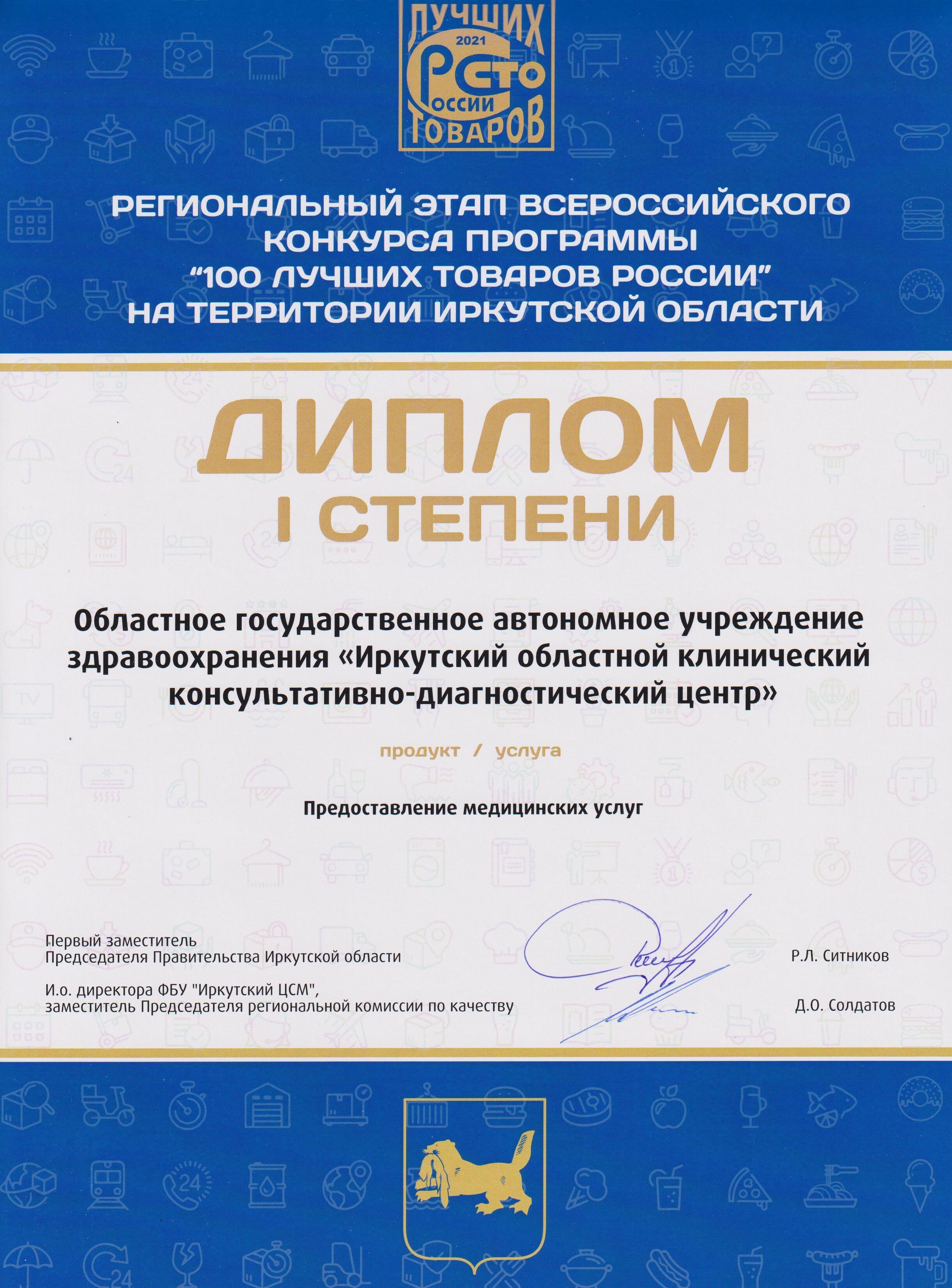 Теперь Иркутский диагностический центр будет участвовать в федеральном этапе Всероссийского конкурса «100 лучших товаров России».